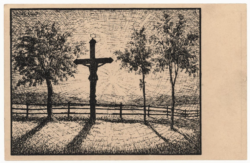 Hmotným odrazem religiozity obyvatel Dlouhé Louky dříve bývaly především křížky vztyčené na rozcestích nebo dřevěné sošky svatých vkládané do výklenků místních stavení. Staré mapy na Dlouhé Louce zachycují tři kříže, již první vojenské mapování zaznamenává kříž stojící na rozcestí pod Vlčí horou, přibližně v místě, kde dodnes můžeme nalézt nachýlený trámový kříž. Další křížek na zděném podstavci stával v horní části obce nad hostincem, poblíž malého rybníčku, jeho podobu ještě zachycují historické pohlednice. Velký trámový kříž s korpusem Ježíše Krista zachycuje rovněž jedna ze starých pohlednic, snad se mohlo jednat o kříž nacházející se ve spodní části obce.