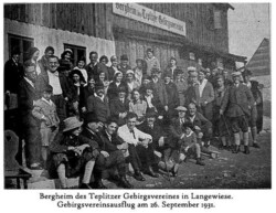 O rozvoj turistiky v Krušnohoří aktivně dbal Erzgebirge Verein – Krušnohorský spolek založený v Teplicích r. 1885, jeho pobočky se nacházely v celé řadě okolních měst i vesnic – v Duchcově, Oseku, Lomu, Litvínově i Mostu. Díky činnosti členů spolku byly značkovány turistické trasy, instalovány rozcestníky a na vhodných místech při cestách byla budována odpočívadla. Spolek vydával v Teplicích vlastní časopis Erzgebirge Zeitung, velice zdařilé regionální vlastivědné periodikum, na jehož stránkách byla publikována řada článků dokumentujících historii i současnost Krušnohoří. Spolek vydával vlastní turistické mapy a průvodce.